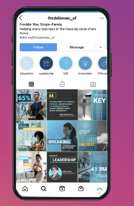 Instagram Feed For Freddie Mac on Real Estate Professional. Targeting Gen-Z and Millenial audiences.